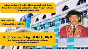 Jambi, 21 Desember 2022 – Pengangkatan Jabatan Akademik/fungsional Dosen tetap Prodi S2 MPI Pascasarjana UIN STS Jambi sebagai Professor/Guru Besar, atas nama Prof. Samsu., S.Ag., M.Pd.I., Ph.D dalam bidang ilmu kepemimpinan pendidikan.