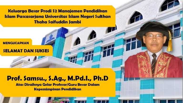 Jambi, 21 Desember 2022 – Pengangkatan Jabatan Akademik/fungsional Dosen tetap Prodi S2 MPI Pascasarjana UIN STS Jambi sebagai Professor/Guru Besar, atas nama Prof. Samsu., S.Ag., M.Pd.I., Ph.D